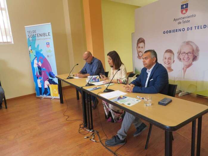 La alcaldesa, Carmen Hernández, y los concejales de Medioambiente y Seguridad, Álvaro Monzón y Agustín Arencibia, presentaron este viernes en rueda de prensa esta iniciativa que cuenta con el apoyo de Ecoembes y la Consejería de Transición Ecológica, Lucha contra el cambio climático y Planificación Territorial del Gobierno de Canarias, para aumentar el porcentaje del uso de los contenedores amarillos (para envases domésticos de plástico, latas y briks) y azules (para envases de papel y cartón) entre los vecinos y vecinas del municipio de Telde.
