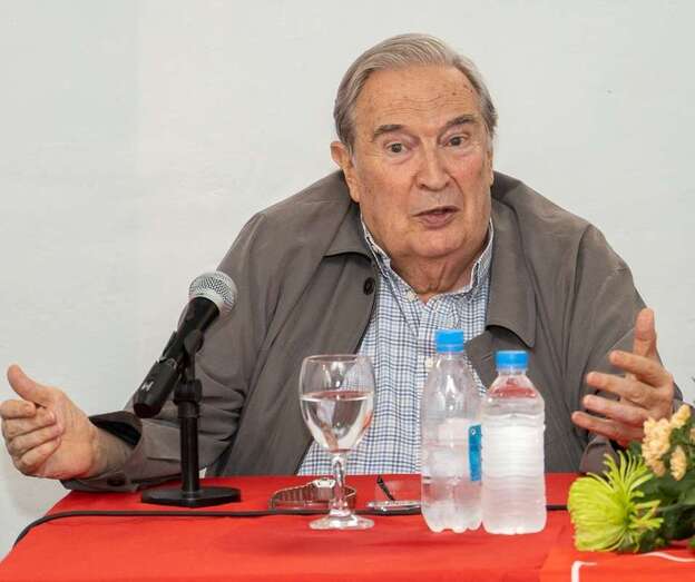 El expresidente del Gobierno de Canarias, Jerónimo Saavedra, y el activista social, Gregorio Viera, fueron hoy los protagonistas de la tarde en el Círculo Cultural de Telde, tras encabezar la mesa de debate, organizada por la ejecutiva del PSOE local, para tratar la LGTBIfobia desde el municipalismo.