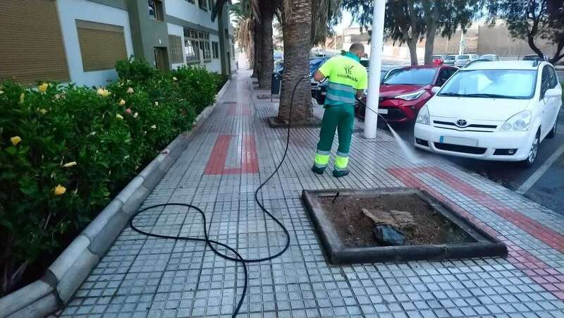 El Ayuntamiento de Telde, a través del área de Servicios Municipales, ha activado desde primera hora de este jueves un dispositivo extraordinario de limpieza en las calles de Luis Morote y Américo Vespucio, en el sector costero de Melenara.