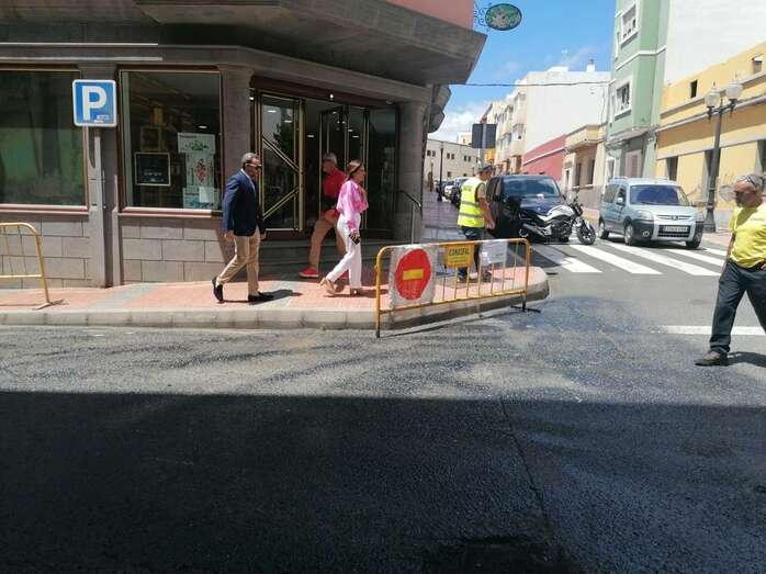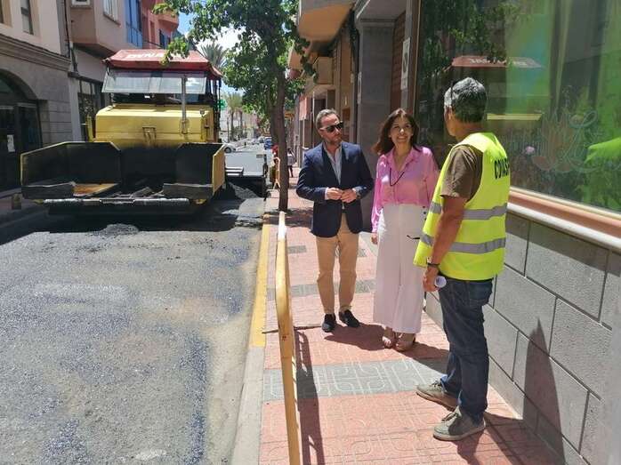La alcaldesa de Telde, Carmen Hernández, acompañada del edil de Vías y Obras, Eloy Santana, comprobaron el avance de este proyecto de repavimentación, que tiene una inversión de 576.995,13 euros para intervenir en más de 40 calles, tanto en el casco como en la costa.
