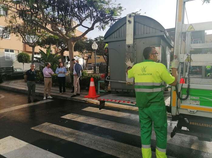 El Ayuntamiento de Telde trasladó este jueves un dispositivo especial para realizar una limpieza de choque en el barrio de Punto Fielato, que incluyó la renovación de algunos de los contenedores, tal y como se comprometió la pasada semana la alcaldesa, Carmen Hernández, durante una visita a este enclave para conocer las inquietudes de vecinos y vecinas.