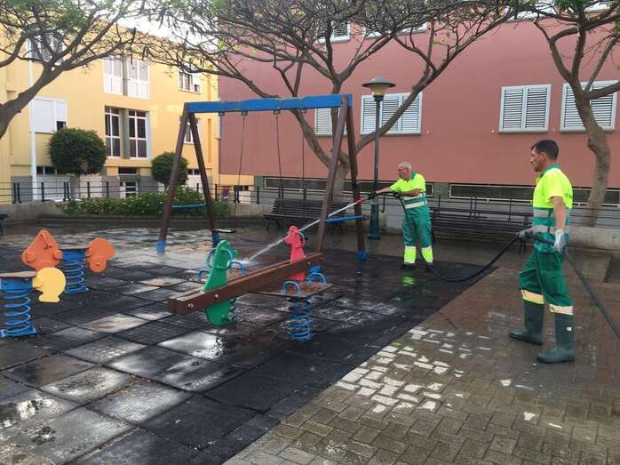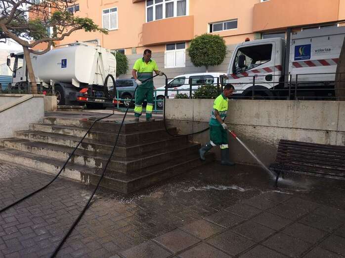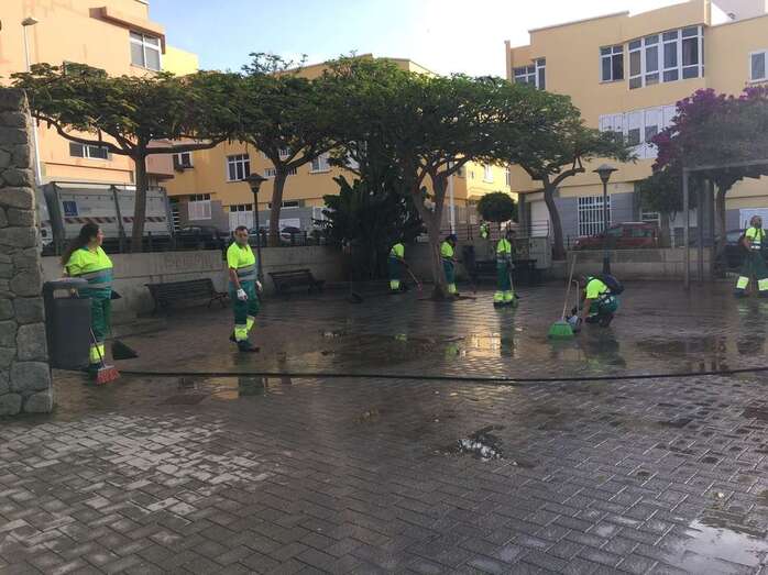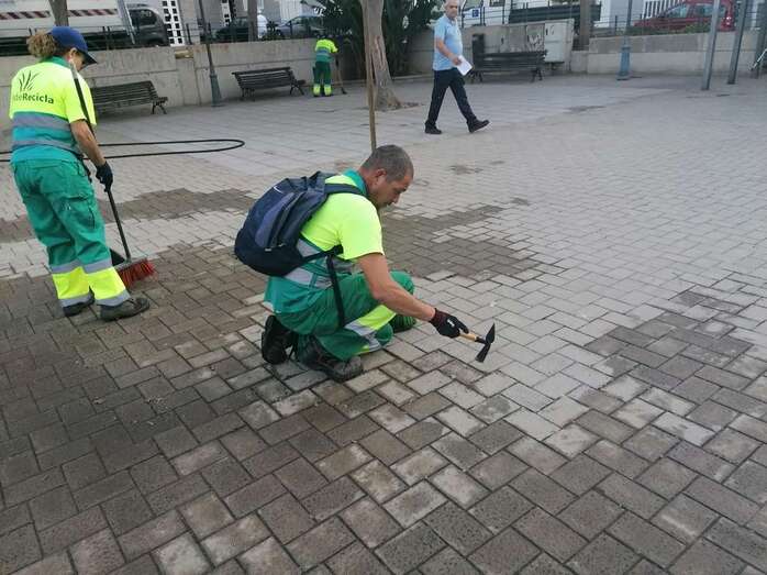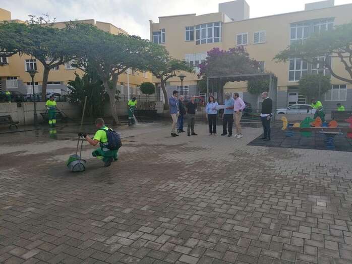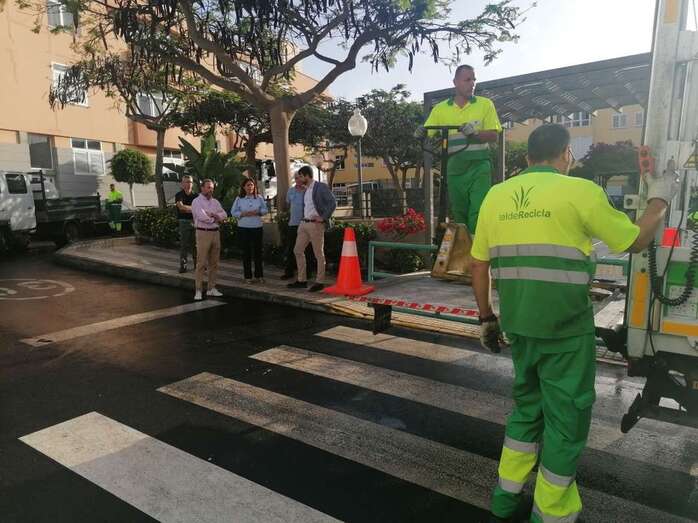 Para comprobar el desarrollo de las tareas, la primera regidora acudió a los alrededores de la plaza, acompañada por el edil de Limpieza, Eloy Santana. Hernández recordó que con este tipo de actuaciones se consigue mejorar el estado de los espacios públicos y, a la vez, se optimizan las labores de los servicios rutinarios.