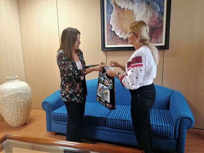 La alcaldesa de Telde, Carmen Hernández, recibió de la mano de la cónsul honoraria de Rumanía en Canarias, Alina Râmaru, la blusa típica de su país, considerada un símbolo nacional. Y lo hizo en señal de agradecimiento por el apoyo de la Institución a la comunidad de rumanos, tanto en eventos culturales como en gestiones para la realización de procesos electorales del país en el extranjero.