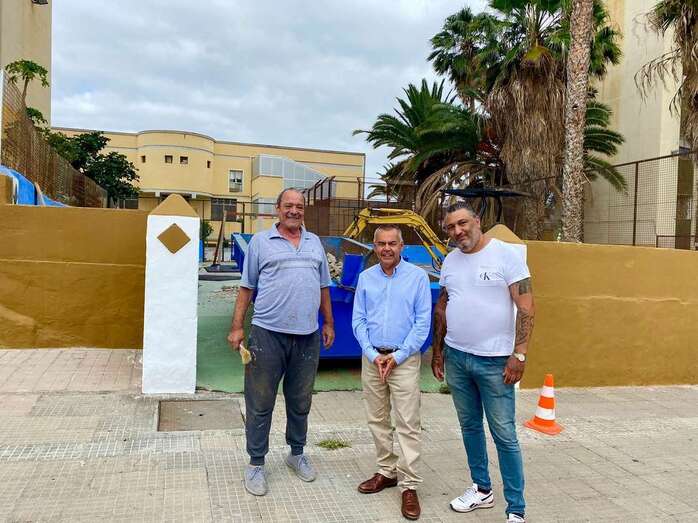 El concejal del área, Álvaro Monzón, ha visitado recientemente el parque de Jinámar junto a los presidentes de las comunidades de vecinos de la zona, Santiago Suárez y Roberto Pérez. Este espacio será completamente remodelado, se instalarán nuevas piezas, tipo resorte, y se rehabilitará el columpio. Asimismo, también se le dará un tratamiento cromático, se renovará el suelo y se sanearán los muros.