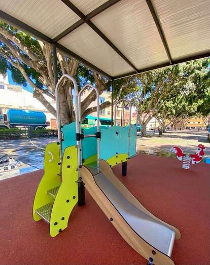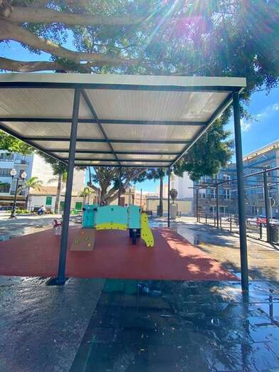El Ayuntamiento de Telde ha concluido la instalación de una pérgola, a modo de techo, en la zona infantil del parque Franchy Roca, al tiempo que ha iniciado obras de rehabilitación en el área de juegos de Cánovas del Castillo.