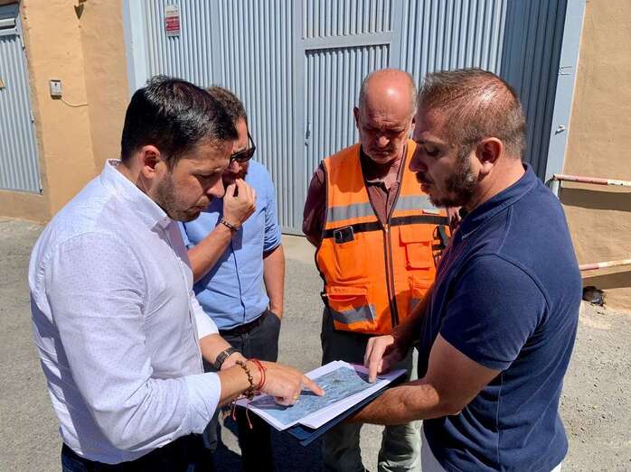 El edil del área y vicealcalde de Telde, Héctor Suárez, visitó este jueves la zona junto al responsable de la empresa adjudicataria y el encargado de obra para conocer su desarrollo y planificación sobre el terreno.