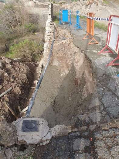 El Ayuntamiento de Telde informa que el pasado lunes comenzaron los trabajos de cimentación de la calle Eolo, en La Higuera Canaria, hundida parcialmente por las fuertes lluvias. Se trata de una obra ejecutada por la Consejería de Sector Primario del Cabildo grancanario, que dirige Miguel Hidalgo, a instancias del Consistorio teldense.