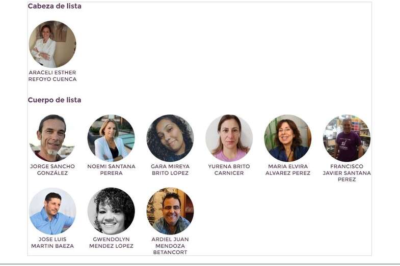 La lista encabezada por Araceli Refoyo está integrada por Jorge Sancho, Noemí Santana (actual consejera del Gobierno de Canarias), Gara Brito, Yurena Brito, María Elvira Álvarez, Francisco Javier Santana, José Luis Martín, Gwendolyn Méndez, y Ardiel Juan Mendoza.