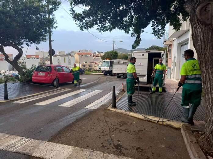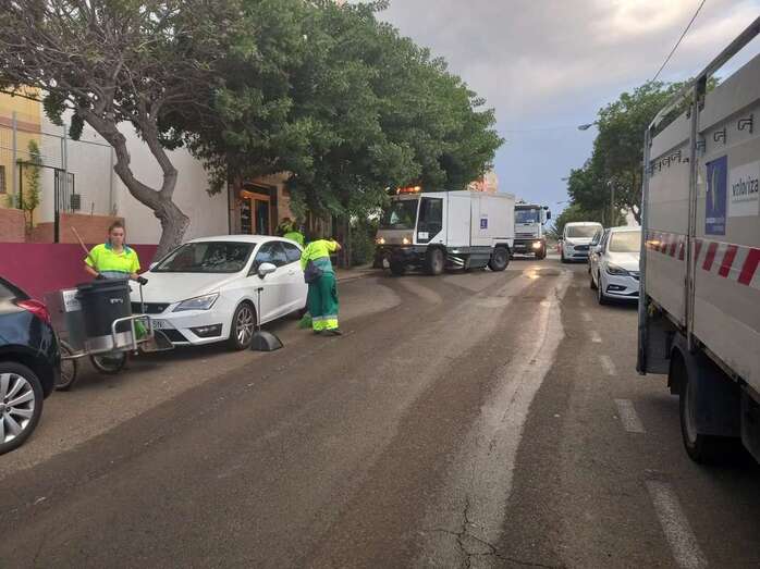 El equipo estuvo compuesto por siete conductores y 22 operarios y operarias de barrido, que ejecutó las tareas apoyadas por una hidrolimpiadora de 2.500 litros, un vehículo de caja abierta para el servicio de recogida de trastos de MMA 3.500 kilogramos, dos barredoras, una cuba de baldeo de 8.000 litros y un vehículo de caja abierta para el transporte de contenedores y otro lavapapeleras.