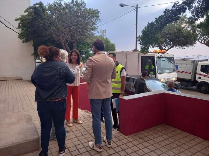 La alcaldesa de Telde, Carmen Hernández, y el edil de Limpieza, Eloy Santana, se trasladaron hasta el entorno de la asociación vecinal para seguir el desarrollo de estos trabajos que permiten optimizar las labores de los servicios rutinarios y a los que se comprometió la primera regidora días atrás cuando mantuvo un encuentro con los representantes de los vecinos y vecinas.