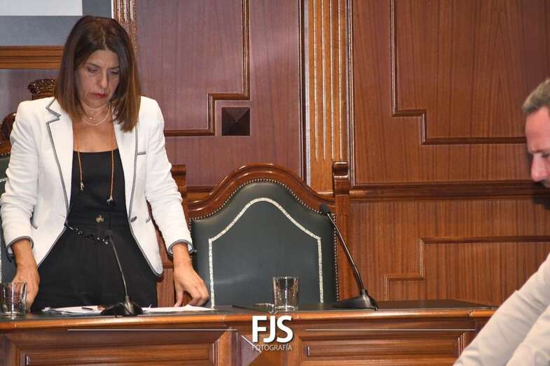 María del Carmen Pérez Sánchez, vecina de La Viña, componente del equipo directivo de la AV Nuestra Señora de la Paloma y taxista, leyó este jueves la declaración institucional en el Pleno del Ayuntamiento de Telde contra la violencia de género.
