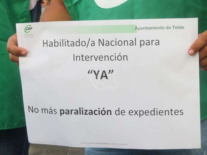Precisamente este fue uno de los temas que el Pleno de Telde abordó este jueves. Y además, el sindicato CSIF convocó una concentración a las puertas de las Casas Consistoriales de San Juan, donde se reúna la Corporación en sesión ordinaria, para protestar por la falta de una interventora y contra la parálisis de la Administración Pública.