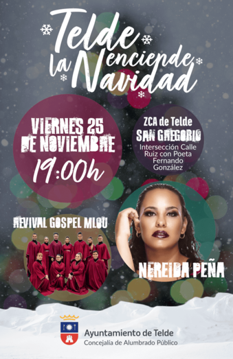 Por último, el edil invita a toda la ciudadanía, especialmente a los niños y niñas de Telde, a disfrutar del evento previsto para este viernes, dando comienzo al periodo navideño en la ciudad, que contará con las actuaciones musicales de la cantante Nereida Peña, concursante del programa ‘La Voz’, y el coro Revival Gospel Mlou.