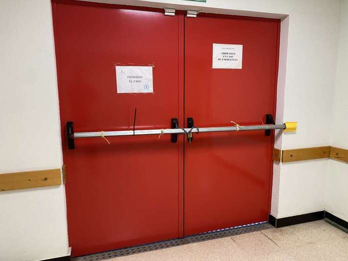 Los hechos, según relata Peña, suponen un grave riesgo para la seguridad de los usuarios, personas mayores, que en caso de evacuación inminente no podrían utilizar la puerta de emergencia que se orienta a la calle Alonso Quesada. Su apertura permanece bloqueada con candados y cadenas. El edil de Ciuca detalla que el acceso se estropeó y que la solución que se le dio desde el Gobierno municipal fue bloquearla con cadenas.