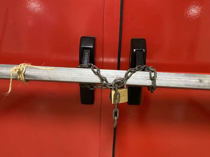 La principal puerta de emergencia del Centro de Mayores de Telde está bloqueada con cadenas y candados, evitando su apertura inminente, según denuncia Ciudadanos para el Cambio (Ciuca). Juan Antonio Peña, concejal y portavoz de esta formación política visitó en la mañana de este miércoles las instalaciones y comprobó lo sucedido junto a usuarios del inmueble.