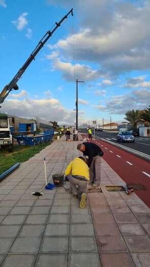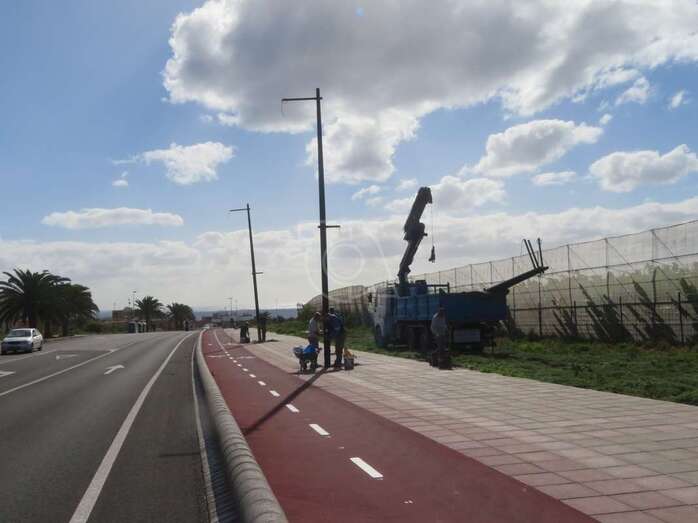 El Ayuntamiento de Telde ha comenzado la instalación del alumbrado sostenible del carril bici y peatonal de la carretera de Melenara. Se trata de 58 luminarias de tipo led con columnas de poliéster reforzado con fibra de vidrio que estarán colocadas a lo largo de este paseo que une la costa con Casas Nuevas y con el resto del municipio.
