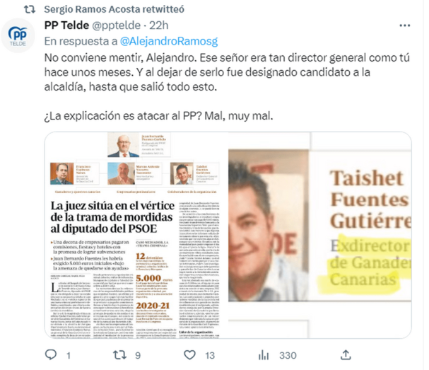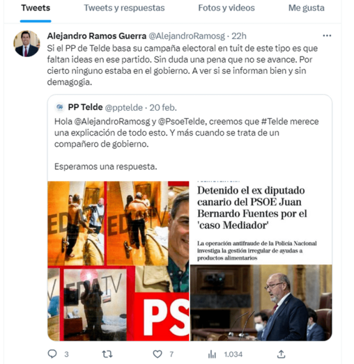 Vea aquí la secuencia de los tuites entre PP y PSOE de Telde