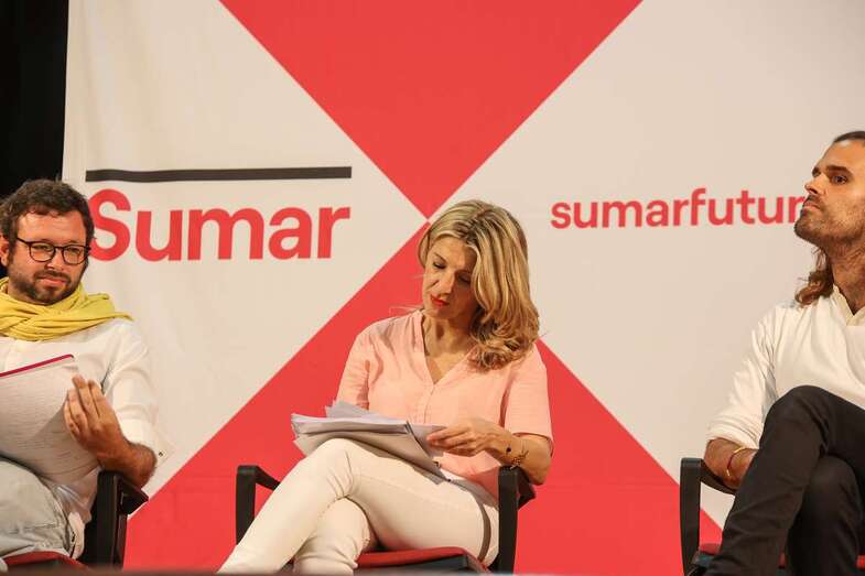 Yolanda Díaz ha subrayado que la misión que se plantea Sumar es "atender a la gente que está afuera", no hablar de sí mismo, por lo que ha recalcado que "no se gana un país defendiendo una mesa camilla y hablando de listas electorales".