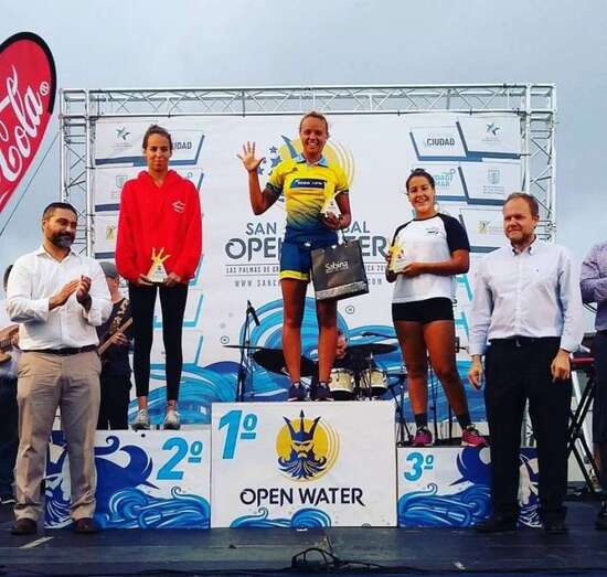 El pasado fin de semana tuvo una apretada agenda. Por un lado, participó en la XII Travesía a Nado Bahía de Gando. “El día y las condiciones del mar estuvieron espectaculares y las sensaciones en el agua fueron muy buenas, pude coger la cabeza de carrera femenina desde el principio siendo la primera fémina al pase del primer 1.500 m., logrando ganar la prueba en categoría femenina en la distancia de 3.000 m. Muy contenta con poder ganar la prueba y haber disfrutado de nadar en la Playa de la Base Área de Gando y del ambiente de la prueba”.