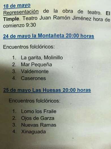 Así, en el encabezamiento de las V Jornadas de Cultura Popular se repite el término popular; los actos se relacionan sin punto y seguido y se cometen errores en la toponimia de Marpequeña (se separa Mar de Pequeña) y Lomo los Frailes (Fraile sin ese final), La Garita (garita en minúscula), por solo citar algunos.