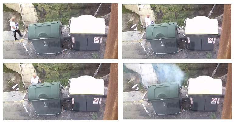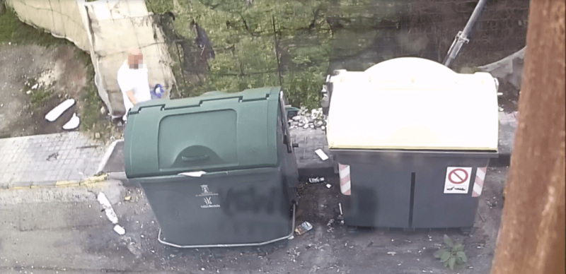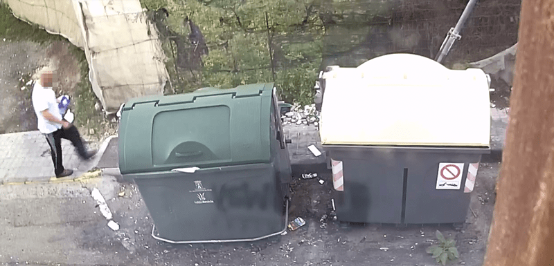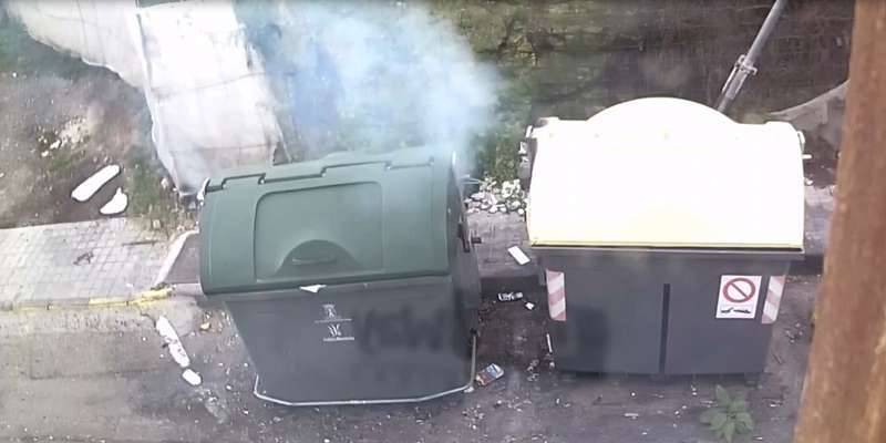 Presuntamente, tal y como reflejan las imágenes a las que ha tenido acceso TELDEACTUALIDAD, el pasado 7 de enero, a media tarde, el individuo se aproxima a un contenedor de residuos sólidos portando un objeto con líquido inflamable o un artefacto incendiario. Tras manipularlo durante unos veinte segundos, prende una llamarada que rápidamente se extiende en el interior del recipiente, originando una humareda blanca.