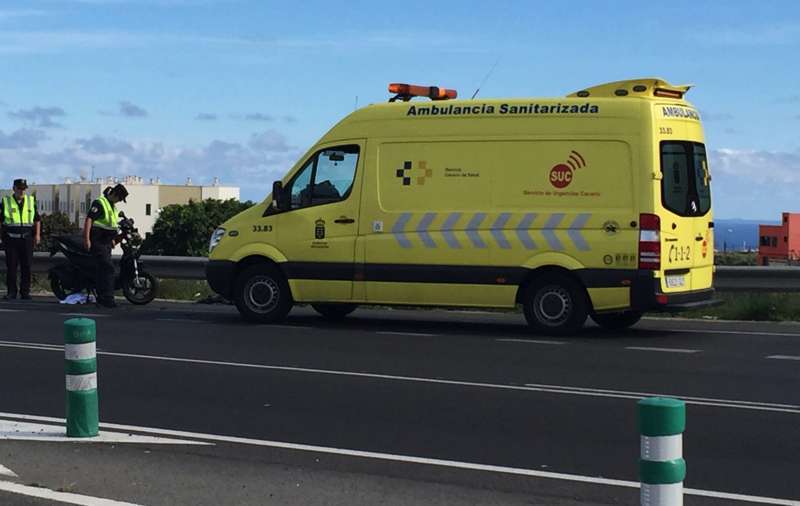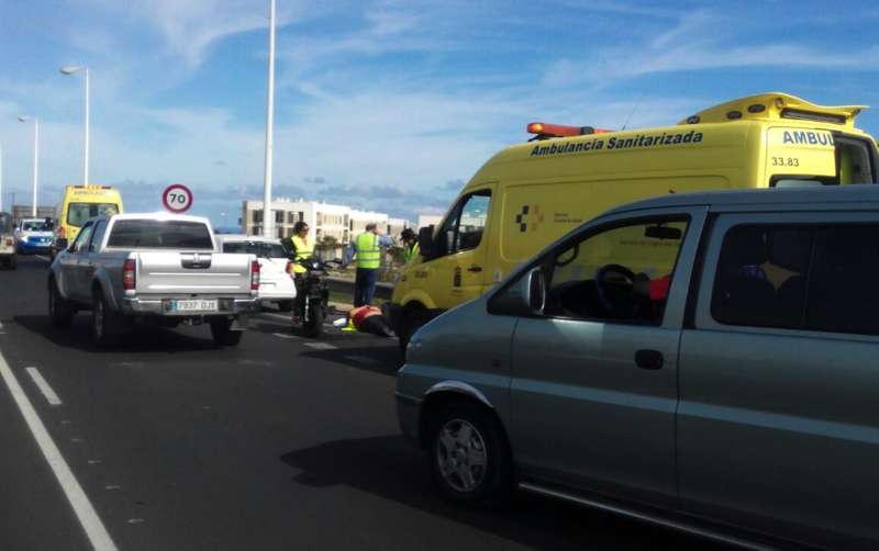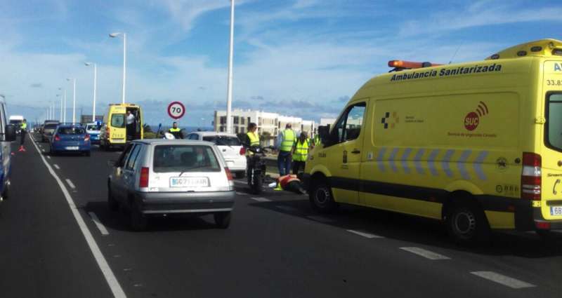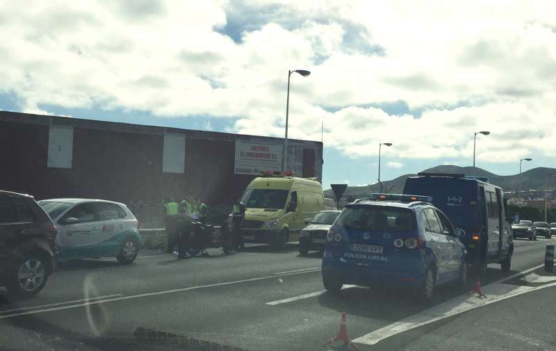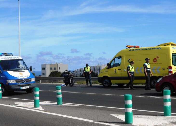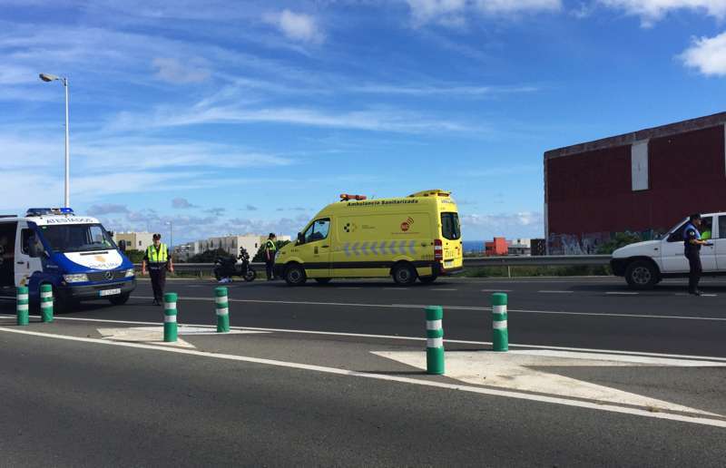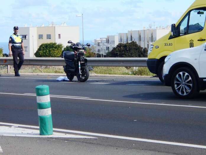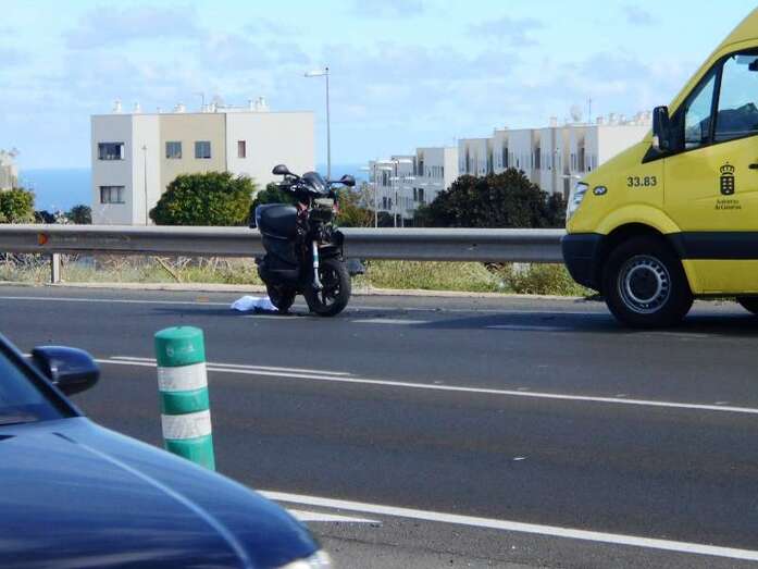 Telde.- El accidente que ha tenido lugar hace escasos minutos en la Circunvalación al casco de Telde, en sentido La Barranquera-San Juan, se ha saldado con un motorista grave. En concreto, el siniestro se ha producido cerca de la intersección que facilita el acceso a la citada carretera de los vecinos que proceden de El Caracol. Allí, un ciclomotor de baja cilindrada, una scooters, ha impactado con un vehículo que le precedía en el ceda el paso, cuando se disponía a incorporarse a la vía.