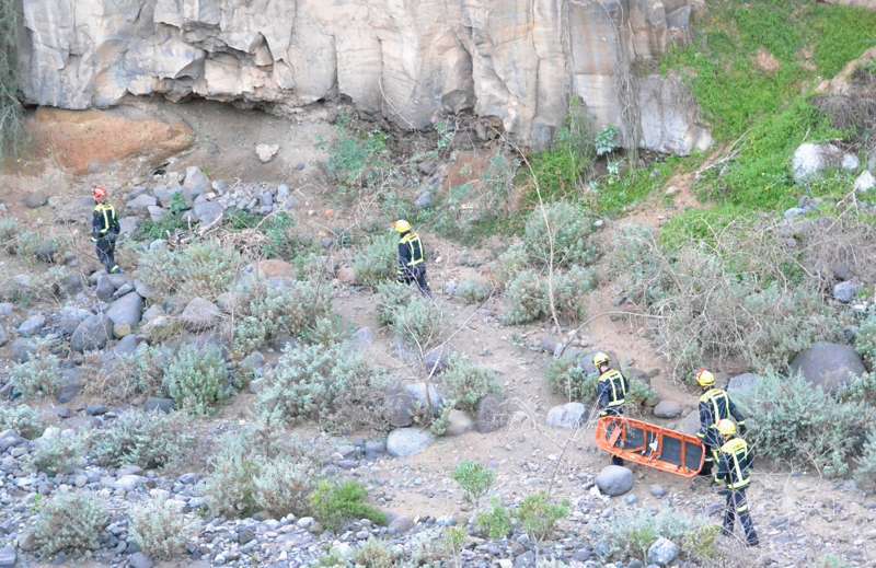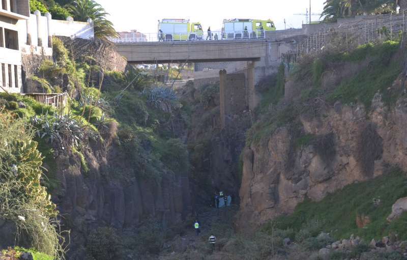 El cadáver permaneció allí hasta que la médico forense inspeccionó el lugar del trágico suceso y sobre las 18.25 horas los bomberos y los agentes policiales iniciaron la extracción del cadáver barranco abajo, siguiendo el cauce de la misma vaguada en dirección a la Máquina del Azúcar, hasta una vereda que conecta con el barrio de San Francisco.