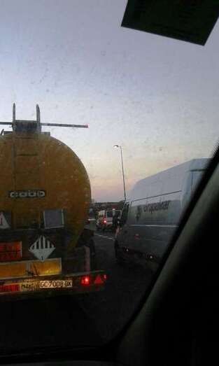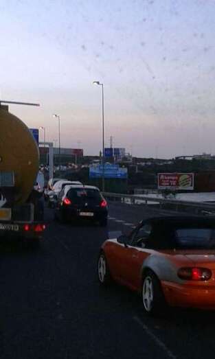 La cola de vehículos, según algunos conductores, llega hasta la entrada a Marzagán, en Jinámar, a la altura de la potabilizadora. El tráfico se está desviando por la antigua carretera del Sur, circunstancia que ha provocado, a su vez, congestión circulatoria en la vía que va de Jinámar al casco urbano de Telde.