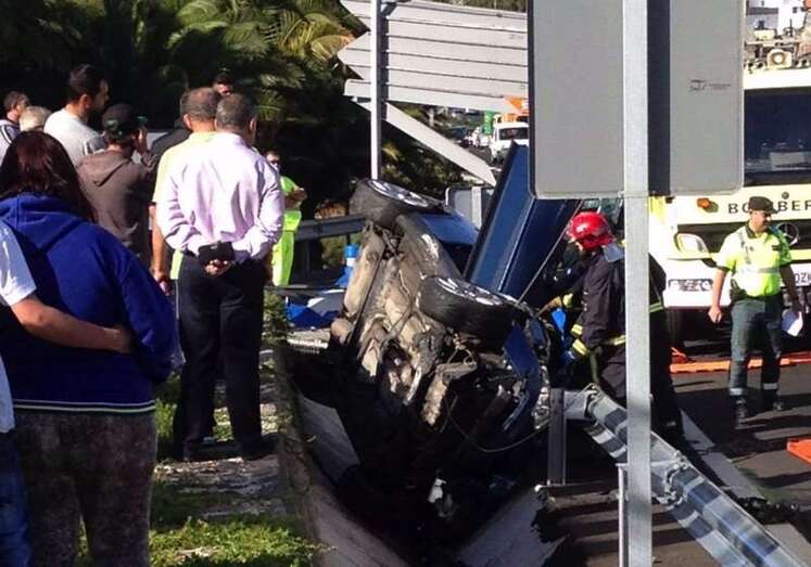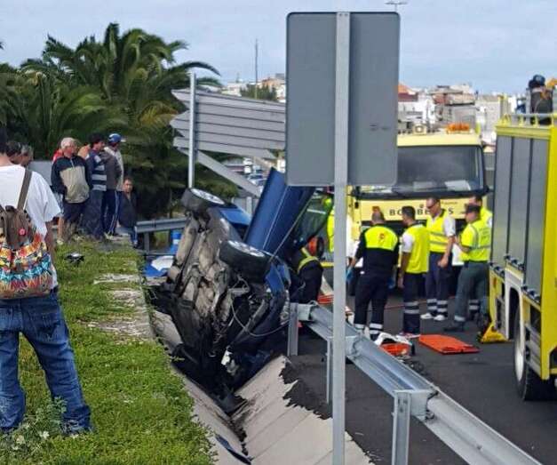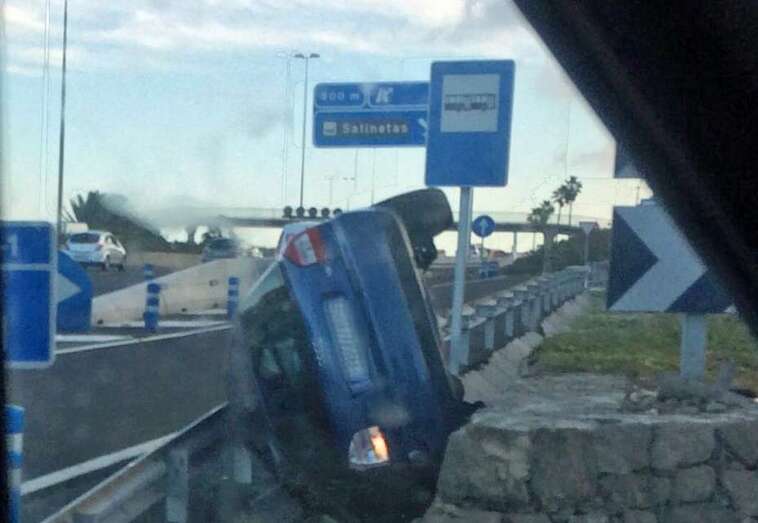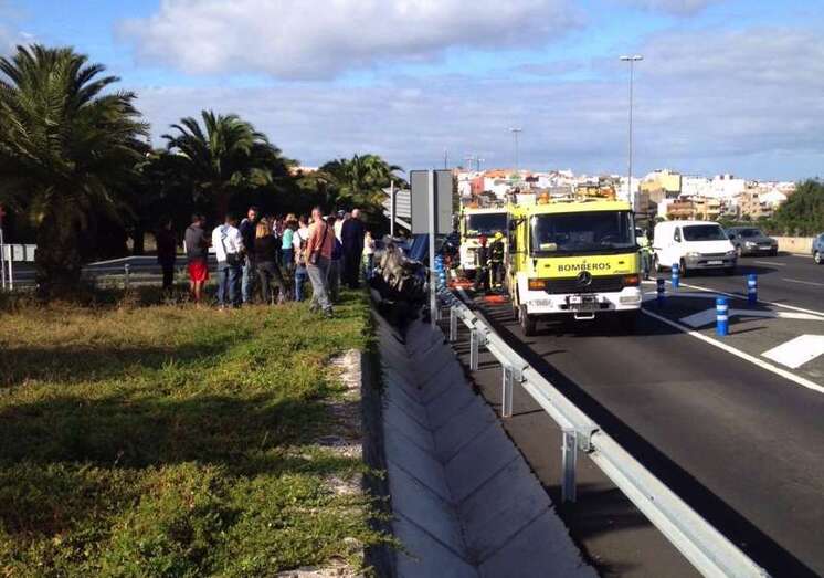 Según los datos captados por TELDEACTUALIDAD, el turismo circulaba por la GC-1, en sentido sur, cuando por causas que se desconocen se saltó el carril de desaceleración que da acceso a Las Huesas y acabó empotrado entre la cuneta y una pequeña zona ajardinada que linda con el carril bus, a unos metros de una parada de guaguas.