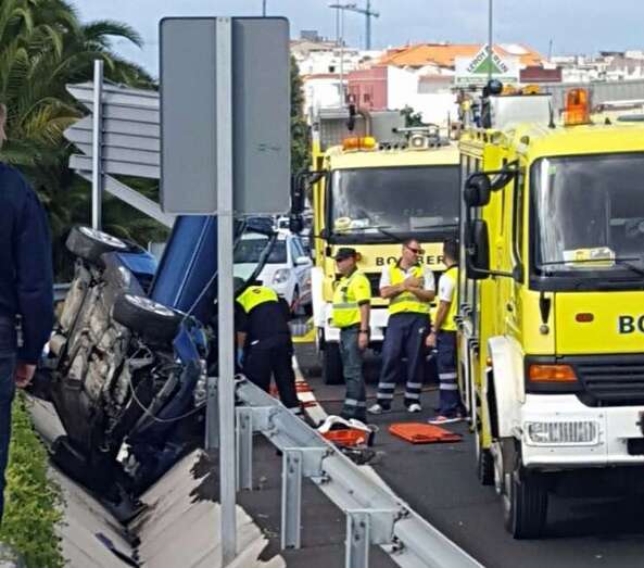 Telde.- Dos personas han resultados heridas de carácter leve en un accidente de tráfico acaecido esta tarde, sobre las 16.00 horas, en el acceso al barrio teldense de Las Huesas desde la autopista GC-1, en sentido sur. Un vehículo se salió de la vía y acabó volcando y encajado la cuneta. Los bomberos tuvieron que excarcelar a uno de sus ocupantes.