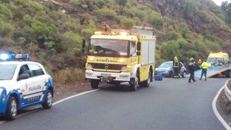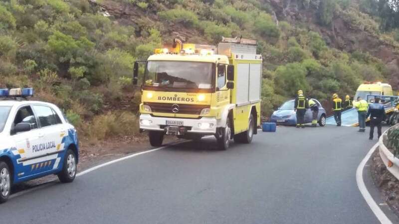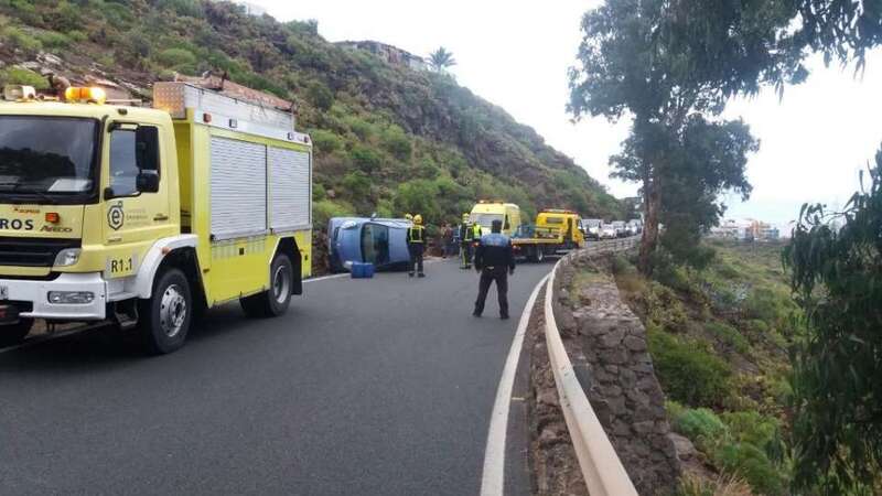 El siniestro se produjo a la altura de Montaña Las Palmas y de la entrada al núcleo poblacional de Tecén y se desconocen las causas del vuelco del turismo de color azul cuando circulaba en dirección Telde-Valsequillo.