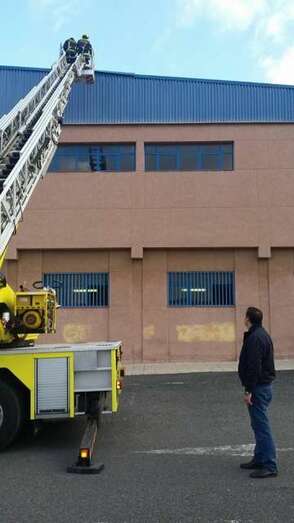 Telde.- Bomberos del parque zonal de Telde fueron movilizados esta tarde desde el área de Deportes para que actuara de urgencia ante el peligro que representaba el desprendimiento de unas planchas de la cubierta del Polideportivo Rita Hernández, sito en el sector de El Hornillo, que habían sido levantadas por las fuertes rachas de viento que se registran en Gran Canaria en la jornada de hoy.