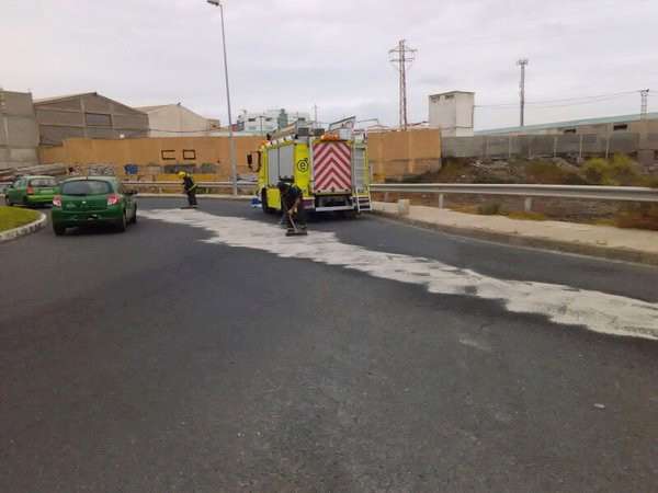 Telde.- Los servicios de emergencia han tenido que intervenir esta tarde a causa de un vertido de combustible en el vial costero de Telde, en el tramo de la zona industrial de Salinetas y junto al nuevo Mercadona. Bomberos, Policía Local y operarios del servicio de Carreteras del Cabildo de Gran Canaria trabajan en la zona para eliminar el peligro de la calzada.