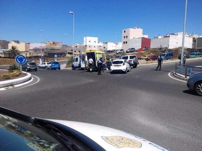 Telde.- Dos vehículos se han visto implicados a primera hora de esta tarde, minutos después de las 15.30 horas, en un accidente de tráfico registrado en la Avenida Alcalde Alejandro Castro Jiménez, cuando circulaban por la rotonda que da acceso al viaducto de San José de Las Longueras. Una conductora ha tenido que ser trasladada a un centro sanitario de la capital grancanaria.