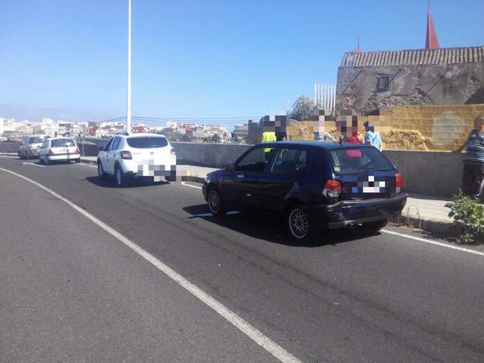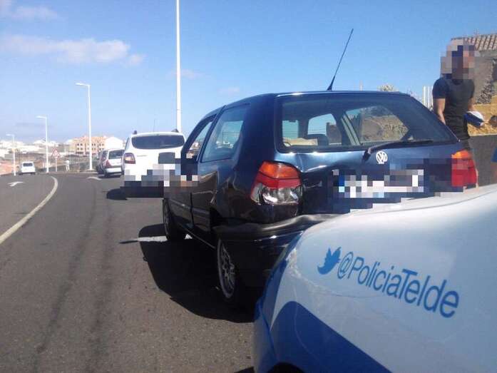 Telde.- Un accidente de tráfico acaecido esta tarde entre varios vehículos en las inmediaciones del puente de San José de Las Longueras ha causado heridas leves a dos personas, así como daños materiales a los automóviles que se vieron implicados. Una patrulla de la Policía Local de Telde se encargó de instruir las diligencias oportunas. El siniestro, una colisión por alcance, se originó en los accesos al viaducto, en sentido Telde casco.