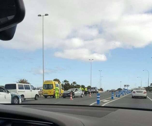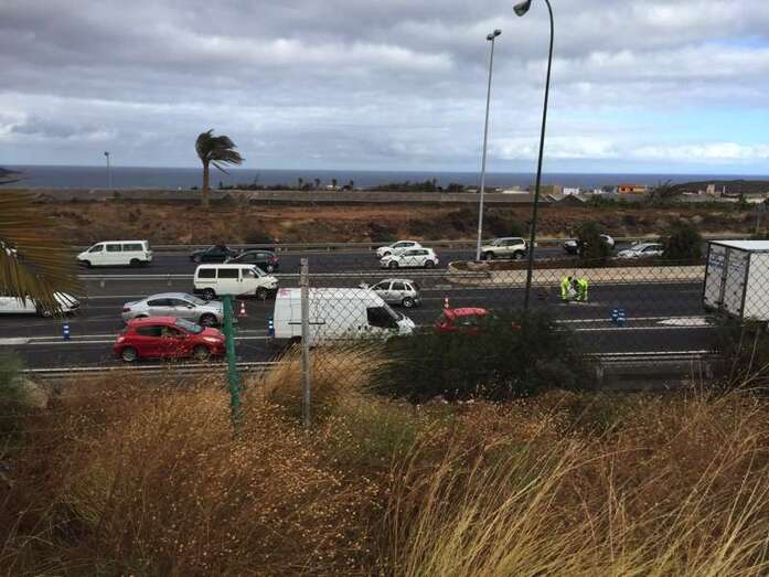 Telde.- Un accidente múltiple acaecido en la autopista GC-1 a la altura de Las Majoreras, en sentido sur, ha generado importantes retenciones de tráfico en el tramo del Aeropuerto de Gando y Ojos de Garza. El carril central e izquierdo quedaron bloqueados por momentos. El siniestro se ha saldado con seis heridos de carácter leve que han sido atendidos por ambulancias del Servicio de Urgencias Canario (SUC).