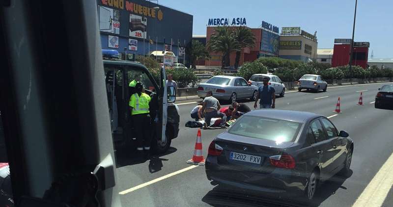 Tras recibir una llamada de alerta sobre las 13.20 horas, hasta el lugar de los hechos se desplazaron agentes de la Agrupación de Tráfico de la Guardia Civil y sanitarios del Servicio de Urgencias Canario (SUC) que atendieron al herido.