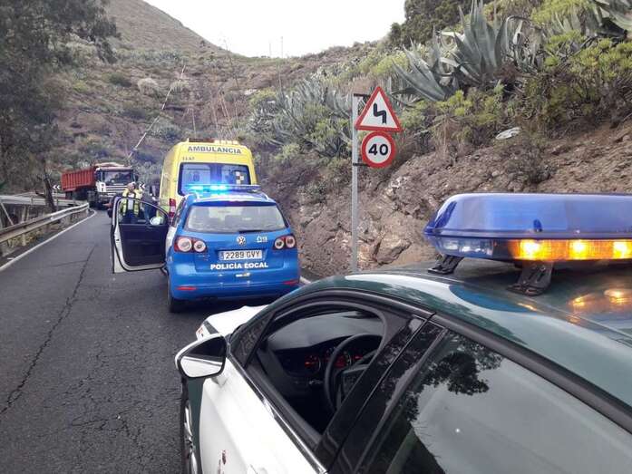 Actualización 16.54 horas: El accidente ha obligado a cortar momentáneamente la circulación en la vía. Se ha habilitado un desvío provisional por el interior de la urbanización de Montaña Las Palmas. Tanto en sentido Valsequillo como Telde, los coches transitan por la calle Jack Lewis.