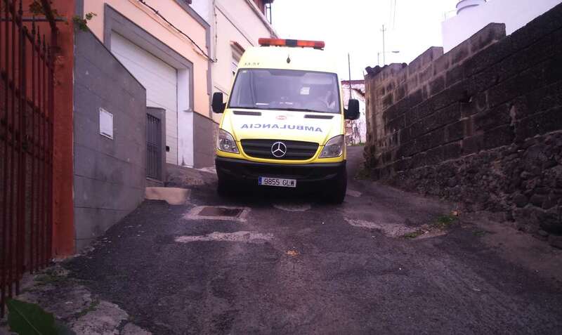 Telde.- Una ambulancia del Servicio de Urgencias Canario (SUC) quedó atrapada esta tarde en una calle de Telde al acudir a atender una llamada de auxilio en el barrio de Caserones.