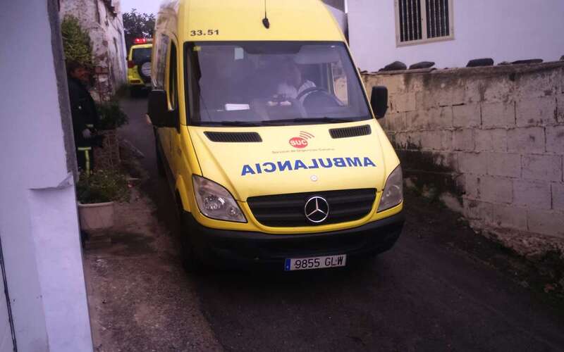 Todo ocurrió a primera hora de esta tarde, en torno a las 16.00 horas, cuando la unidad 33.51 del SUC (una ambulancia de soporte vital básico) fue requerida para auxiliar a una paciente que reside en la angosta y vericueta calle Cendro de Caserones Bajos.