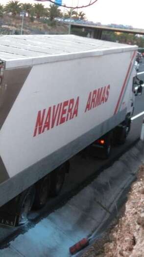 Telde.- Un camión que circulaba esta tarde por la GC-1, en dirección hacia la capital grancanaria, sufrió el reventón de una de sus ruedas cuando se encontraba a la altura del Cruce de Melenara. TA ofrece reportaje del reventón de la rueda.