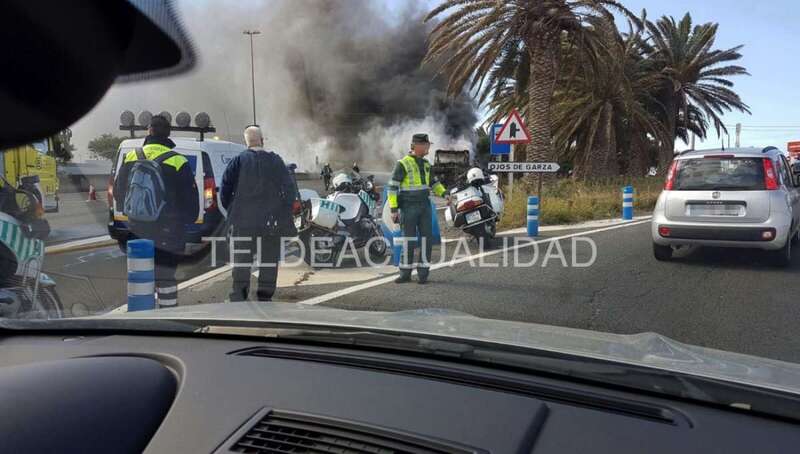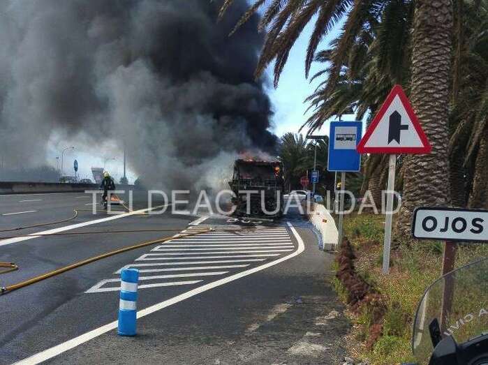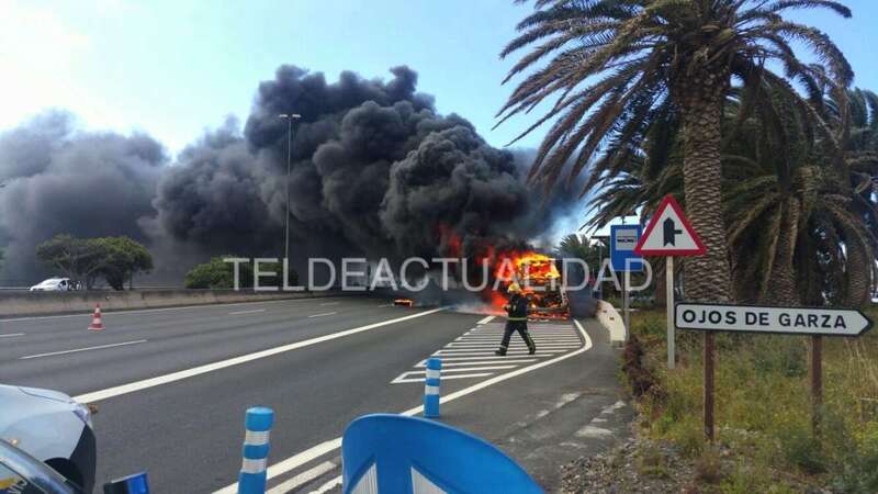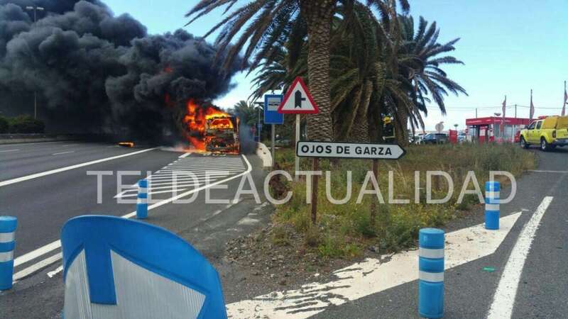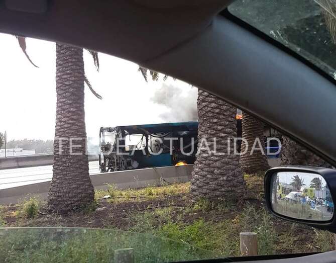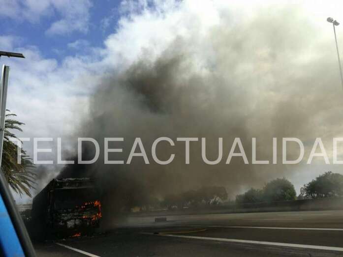 Telde.- Una guagua de Global que circulaba por la GC-1 en dirección sur ha comenzado a arder. El suceso acaba de producirse a la altura de la marquesina de Ojos de Garza, según han avanzado a TELDEACTUALIDAD testigos presenciales. TA avanza dos videos e imágenes.