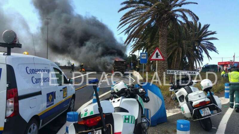 Hasta el lugar del incendio se han desplazado varias dotaciones del parque zonal de bomberos del Consorcio de Emergencias de La Garita y unidades de la Agrupación de Tráfico de la Guardia Civil, que se han encargado de regular el tráfico y desviarlo por una vía de servicio para facilitar los trabajos de extinción.