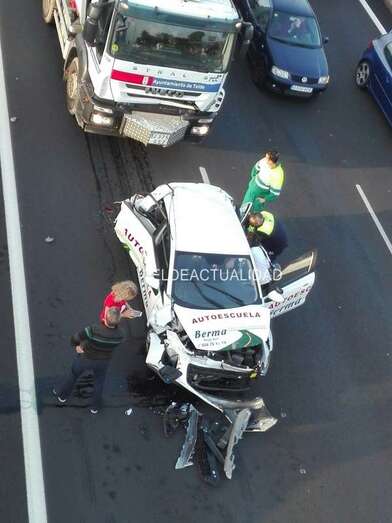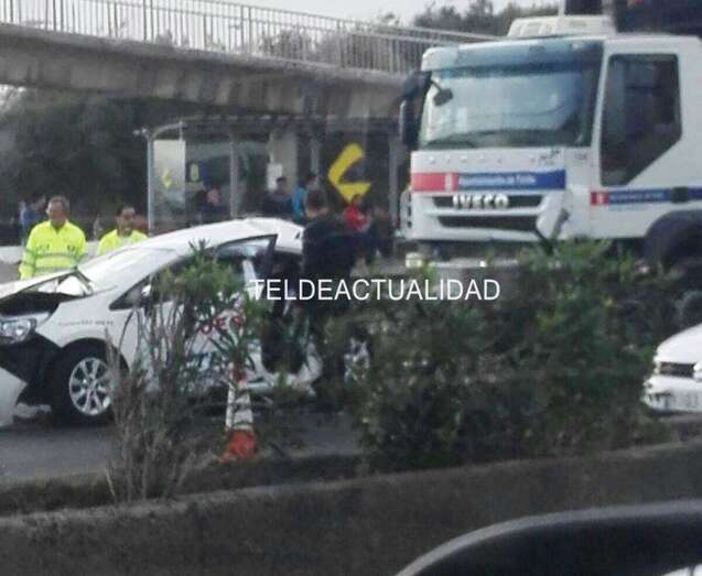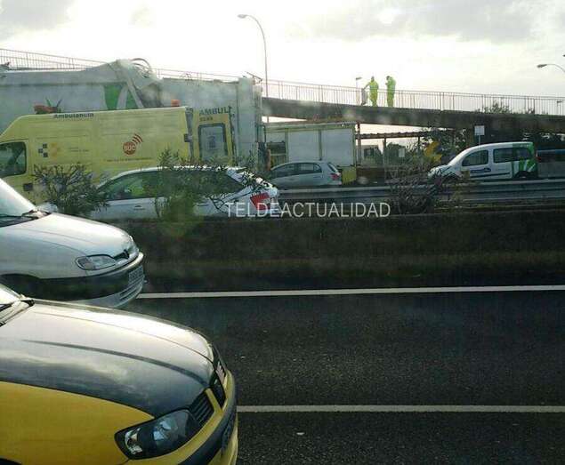 El siniestro, en el que han visto involucrados un caminón del servicio de Recogida de Basura de Telde y un turismo (un vehículo de una autoescuela), se produjo hace unos minutos en los carriles derecho y central de la GC-1 en sentido norte.