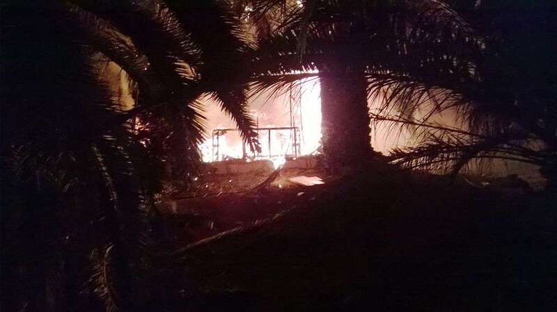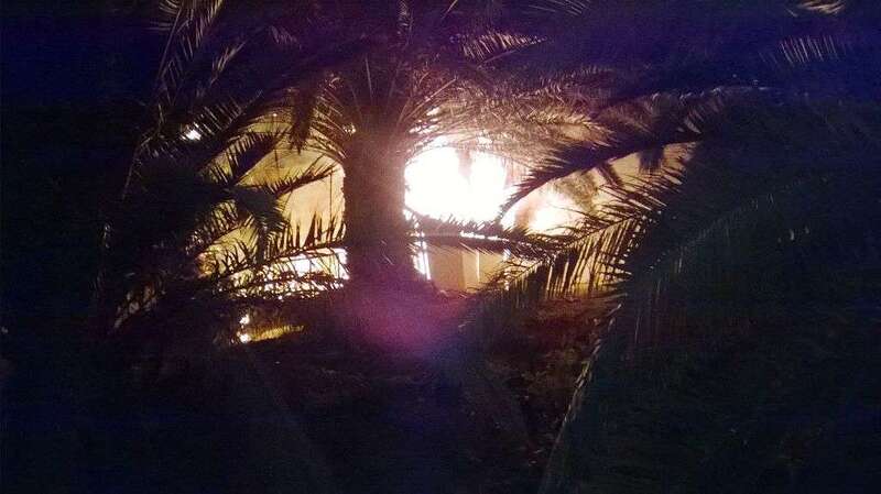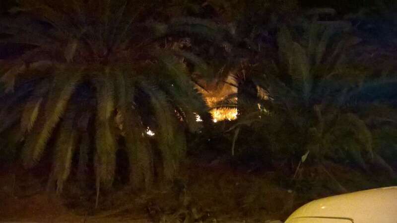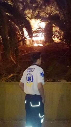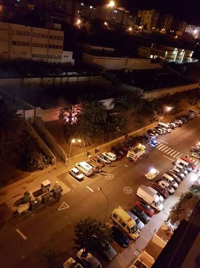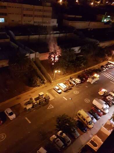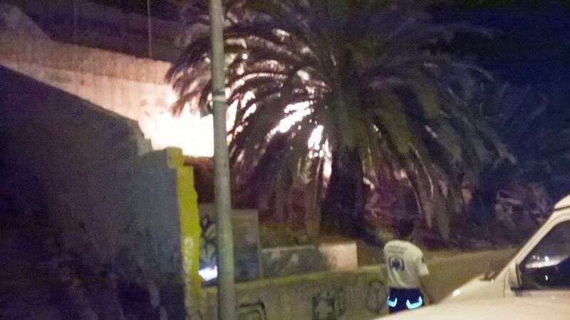 Según las primeras informaciones captadas por un colaborador de TA en la zona, el incendio se cree que fue intencionado. Unos jovenes montaron una caseta pegada al muro y allí fue donde se iniciaron las llamadas que luego se propagaron a las palmeras.