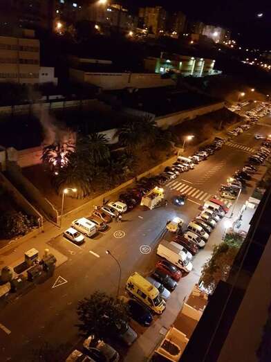 Telde.- Un incendio acaba de producirse hace apenas unos minutos en la calle de Manuel Alemán Álamo, a la altura del bloque 10, que ha afectado a un grupo de palmeras, según testigos presenciales.  TA avanza imágenes del siniestro.