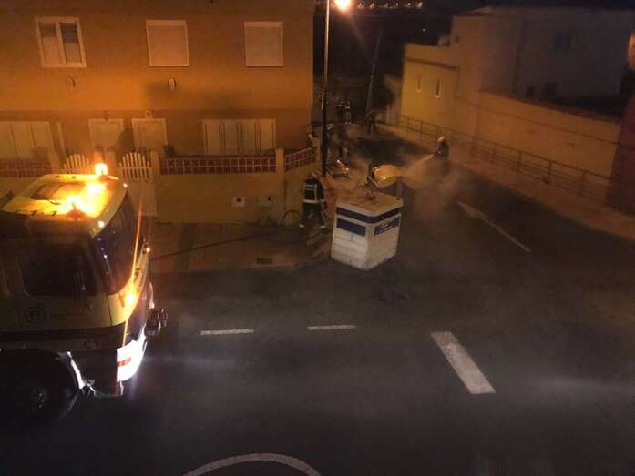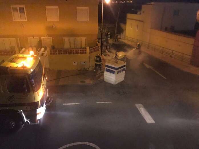 Los bomberos del parque zonal de La Garita tuvieron que acudir para sofocar las llamas, que calcinaron tres contenedores de residuos sólidos urbanos y un iglú de vidrio. Los daños económicos se valoran en torno a los 4.000 euros. Se sospecha que el incendio pudiera ser intesionado.