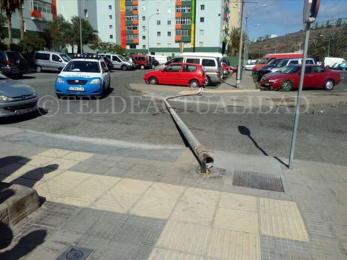 Telde.- Susto mayúsculo el que esta tarde se llevaron los vecinos de un sector de la calle Manuel Alemán Álamo, en Jinámar, al partirse el báculo de una farola y caer ésta sobre el asfalto y la propia acera. Los testigos aseguran que estuvo apunto de alcanzar a varios peatones.