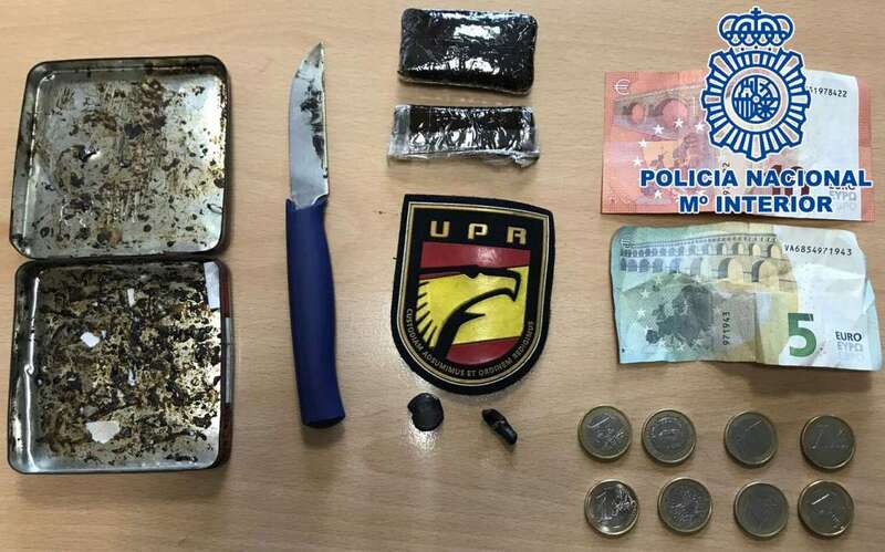 Los funcionarios policiales intervinieron al hombre, sin antecedentes policiales, varios trozos de hachís con un peso total de 40 gramos, un cuchillo y dinero en efectivo, por lo que fue detenido como presunto autor de un delito contra la salud pública.