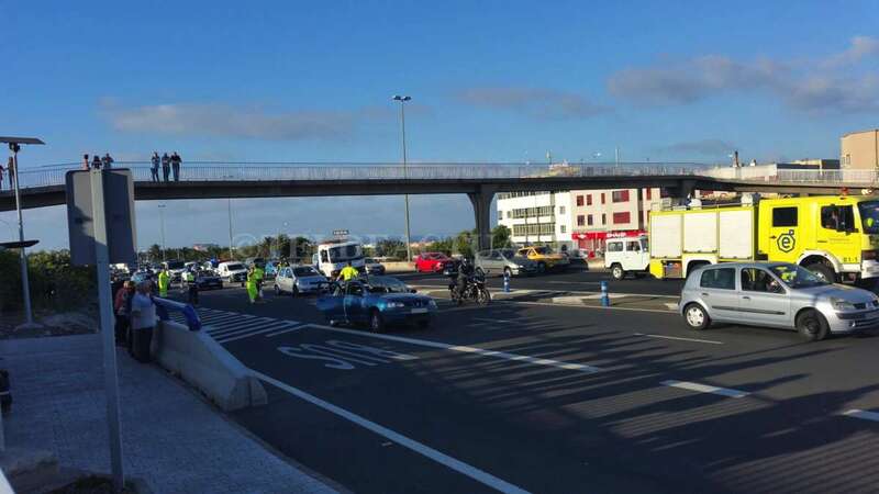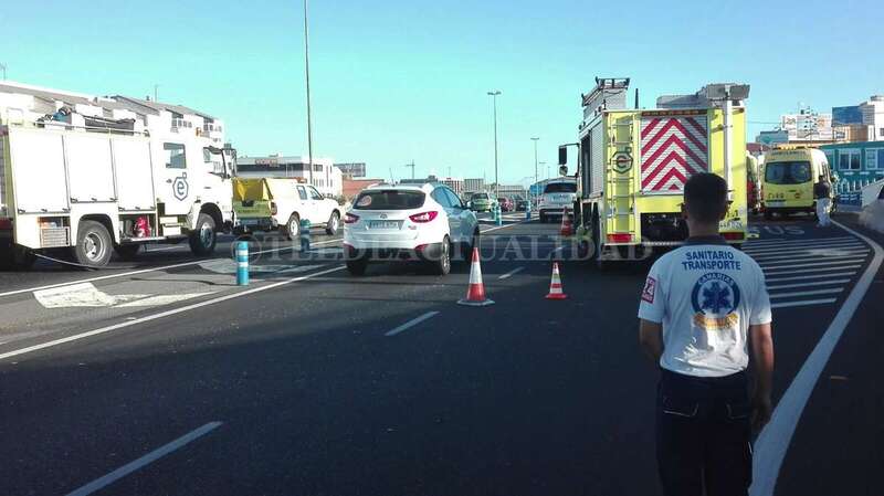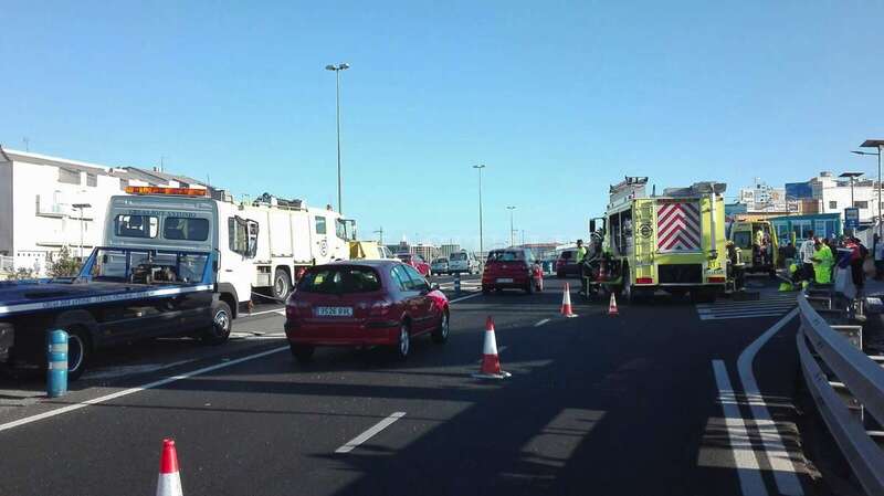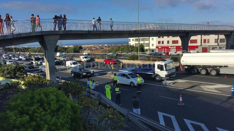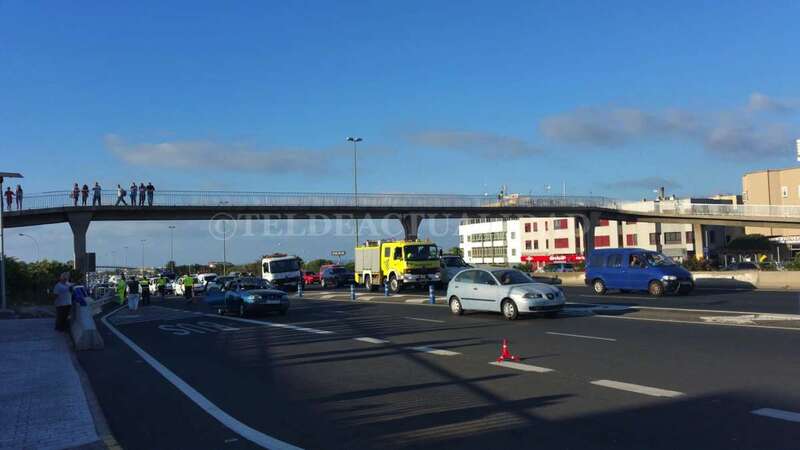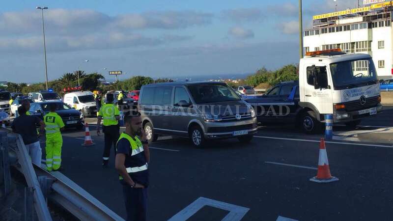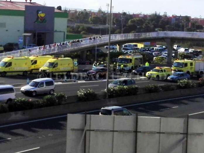 Hasta el lugar en el que ocurrió el siniestro, frente al supermercado de Hiperdino y debajo del puente elevado de peatones que cruza la autovía, se desplazaron tres ambulancias del Servicio de Urgencias Canario (SUC), dos dotaciones de bomberos del parque zonal de La Garita más un vehículo de apoyo y tres unidades de la Agrupación de Tráfico de la Guardia Civil, así como personal del servicio de Carreteras del Cabildo grancanario.